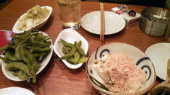 味噌キャベツ・冷や奴・おしんこ・鰺のあめろう・枝豆を注文!!